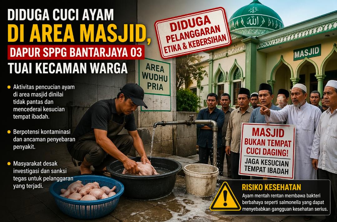 PADANG, DNC.co.id – Publik dibuat geleng kepala setelah mencuat dugaan praktik tidak pantas yang terjadi di Dapur SPPG Bantarjaya 03. Dapur tersebut disebut-sebut melakukan pencucian ayam mentah di area masjid.