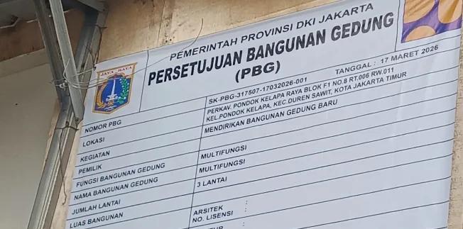 JAKARTA, DNC.co.id – Dugaan pelanggaran Perizinan Bangunan Gedung (PBG) kembali menampar wajah pengawasan di Ibu Kota. Sebuah bangunan di kawasan Perkav Pondok Kelapa Raya, Kecamatan Duren Sawit, diduga berdiri melebihi izin resmi. Ironisnya, hingga kini belum terlihat langkah tegas dari instansi terkait.