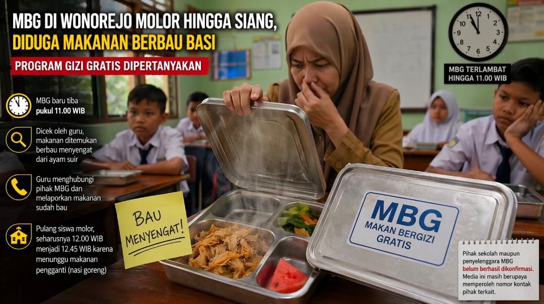 MBG di Wonorejo Molor hingga Siang, Diduga Makanan Berbau Basi, Program Gizi Gratis Dipertanyakan